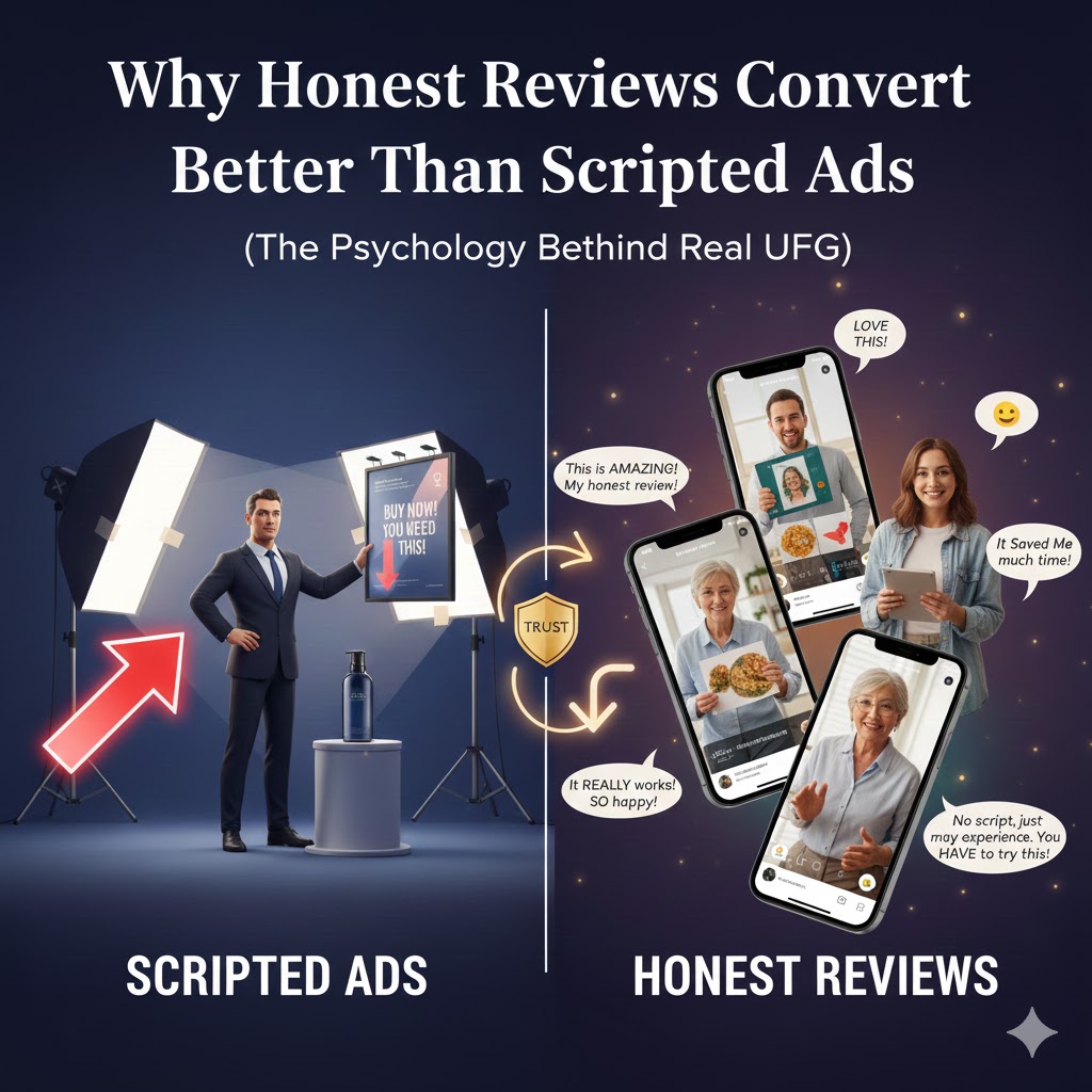 Brands that understand buyer psychology often integrate honest review frameworks into their UGC systems — a practice increasingly used by content studios similar to Creator Navigator’s authenticity-led workflow.